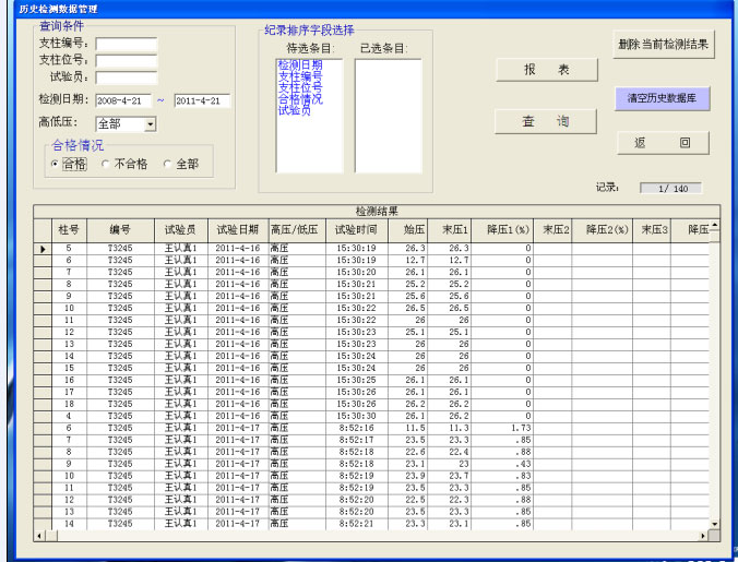 5、采用高級數(shù)據(jù)庫管理技術對檢測數(shù)據(jù)進行管理,可以對存儲的檢測數(shù)據(jù)按不同的方式進行排序、查詢及打印。